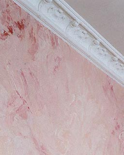 Die Wand links im Raum interpretiert eine Marmorstruktur