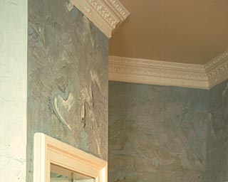 Der dominierende Ton in diesem Schlafzimmer ist ein sanftes, luftiges Blau, das einen ruhigen, erholsamen Schlaf unterstützt.