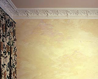 Die Töne in diesem Raum sind den Blüten aus dem Vorhang entnommen.