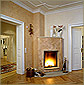 Die Wand zum Flur (links), hinter dem Kamin ist in einem