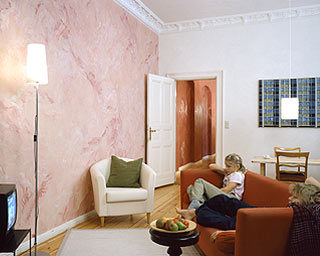 Die Wand links im Raum interpretiert eine Marmorstruktur